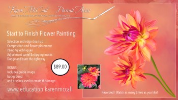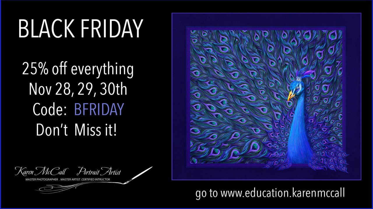 Embarking on the journey of learning digital painting for my client images was daunting. With numerous methods available, I was uncertain where to begin, until fate intervened one evening. A captivating image of Karen McCall's exquisite Peacock, painted in Photoshop, halted my scroll through my newsfeed. Intrigued, I delved into her program, finding it tailored perfectly for someone like me—a beginner with a modicum of knowledge. Enrolling in Karen's Zoom class was a decision I'll never regret. The depth of learning packed into those sessions was astonishing. I diligently took notes, which continue to serve as my guide even now. Since then, I've eagerly participated in several of her classes, each time acquiring fresh insights and techniques. Starting on the path towards achieving our goals requires a leap of faith. For me, that leap was into Karen McCall's class. Looking back, I'm immensely grateful for taking that leap, as are my clients. Thanks to Karen's guidance, my digital painting skills have flourished, enhancing the quality of my work and leaving a lasting impression on those I serve.